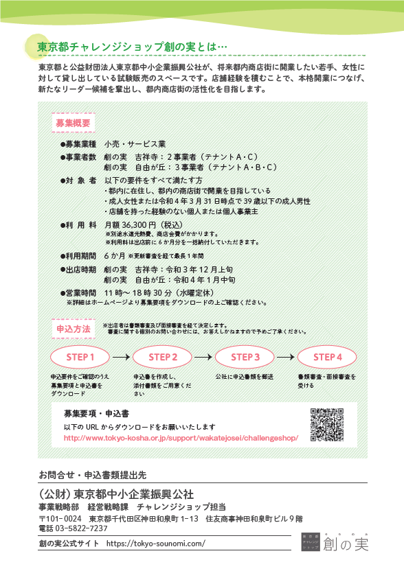 東京都チャレンジショップ「創の実」の新規出店者を募集します